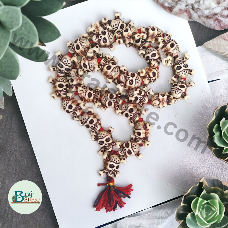BrajStore Presents - Under Tantra Yoga, wearing a This mala, or using it as a rosary for chanting, aids in developing dispassion (vairagya ), for things material, because it reminds one of the ephemeral nature of the material world, where billions of human beings are now dead, and if there are put together the resultant pile will be as huge and high as the Himalayas.