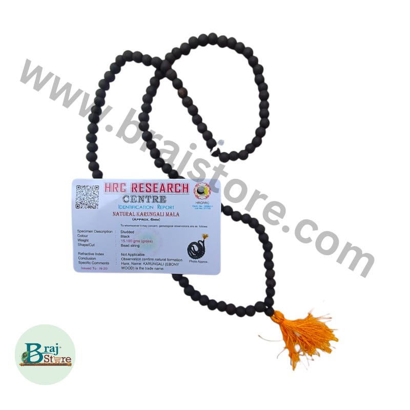 Braj Store Presents- Lab Certified Karungali Premium Beads 6mm Mala. This rosary is chanted upon by the mantras of Goddess Lakshmi and planets favorable for a better decision making and improvement in health.