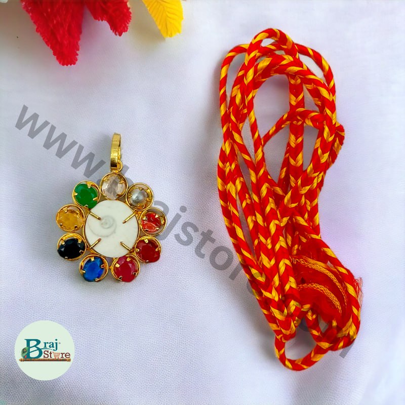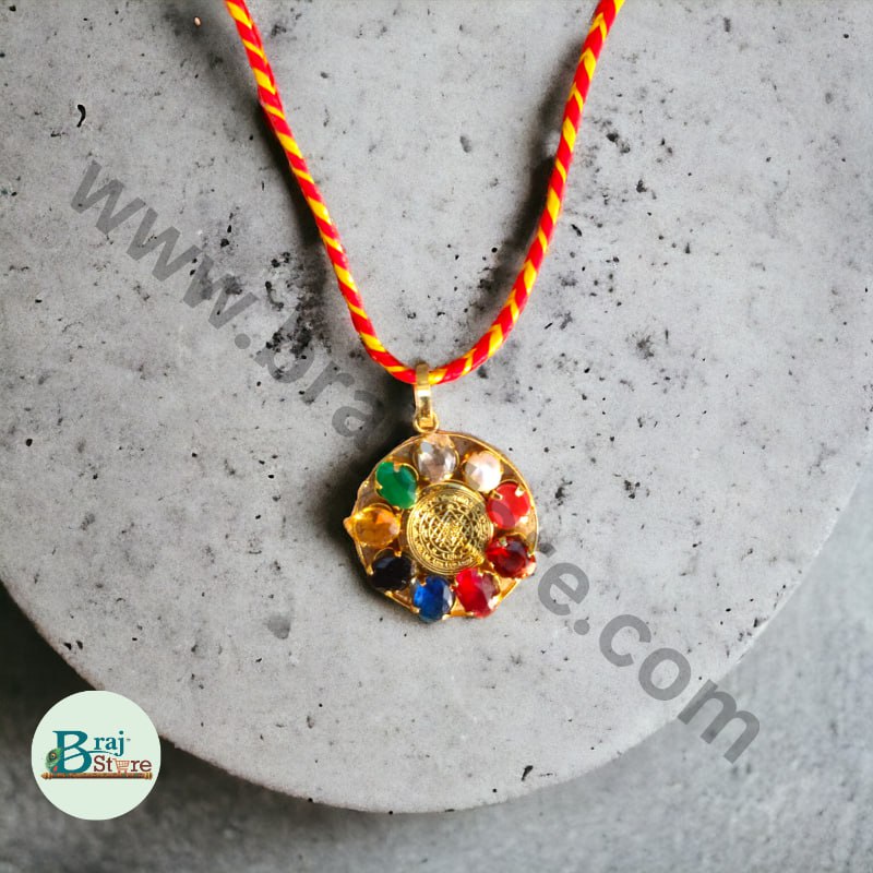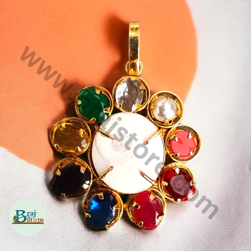 BEST FOR GIFTING: Best Gift For for Pooja, Meditation, Education, Office, Business, Birthday Gift, Corporate or any other Religious Ceremony. UNIQUE DESIGN & COLLECTION: Golden polished pendant in the shape of a flower. It has navratnas in each petal, which is very connected to the pendant.This Piece of jewellery comes with Parure assurance of Quality and Durability.