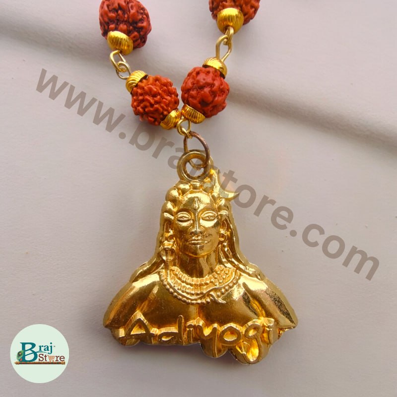 BrajStore Presents- Gold plated brass big size adiyogi shiva pendant with rudraksha seeds mala necklace for unisex. Rudraksha is considered as incarnation of bhagwan shiva. This religious necklace jewelry is the perfect gift for women, mother, girls, men, sisters, teen girl, nina, friends and more. It can wear go with just about any outfit.