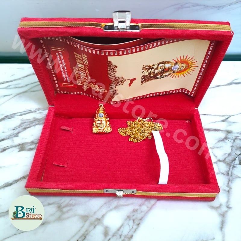 The blessed Shree Siddh Hanuman Chalisa is a one-of-a-kind gold-plated Yantra with Complete Hanuman Chalisa printed in a miniature form, which is visible to naked eyes. This Yantra is Made-in-European Union with a patented technique for such small-scale inscription and comes in form of a beautiful pendant. This cutting-edge European technology results in engraving of miniature text permanently on a crystal glass.