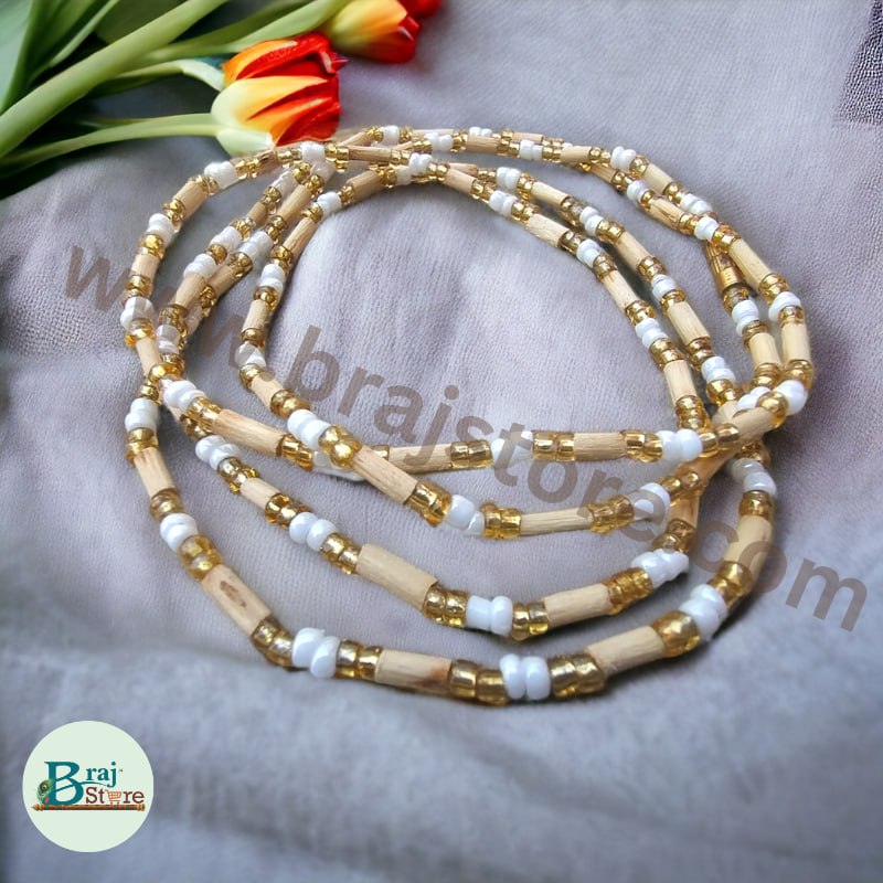 BrajStore Presents: Natural Tulsi Mala/Vaishnav Tulsi Mala (2 Round Necklace/Double Round) Good Quality, Bead Size: Small, and It promotes tranquility and is an aid to meditation Made in India (BrajStore) with traditional knots between beads. In the family of Basil, Tulsi Wood is the most sacred of all woods in the Hindu tradition. This mala is regarded as the best for worshipping of Lord Vishnu, Ram, and Sree Krishna. It is also used for the purification of the body.
